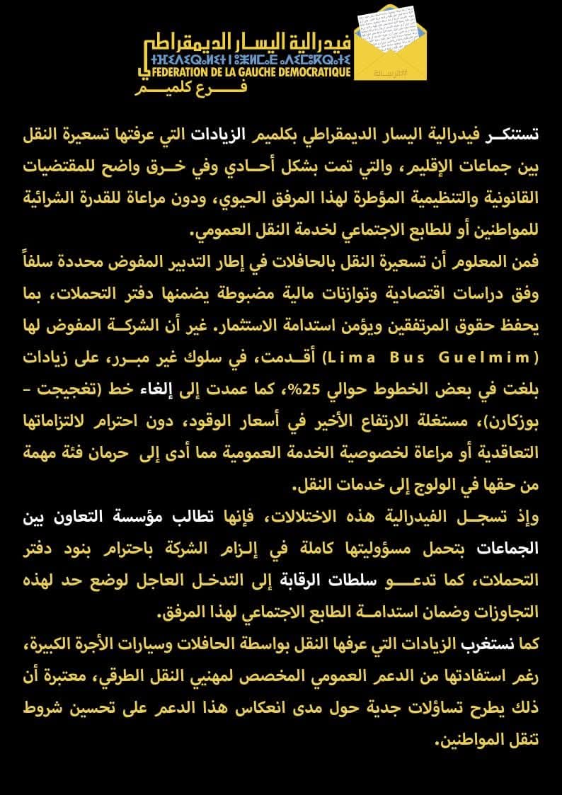 #كلميم #النقل_العمومي #فيدرالية_اليسار #ارتفاع_الأسعار #الجنوب360sud